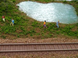 今回、踏切の周りに情景を作って