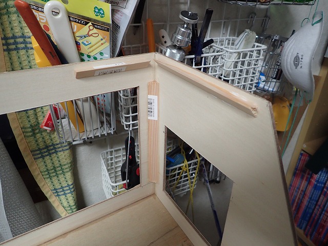 | 木工ボンドで補強します。 | 反転して、接着面を下にします。 |